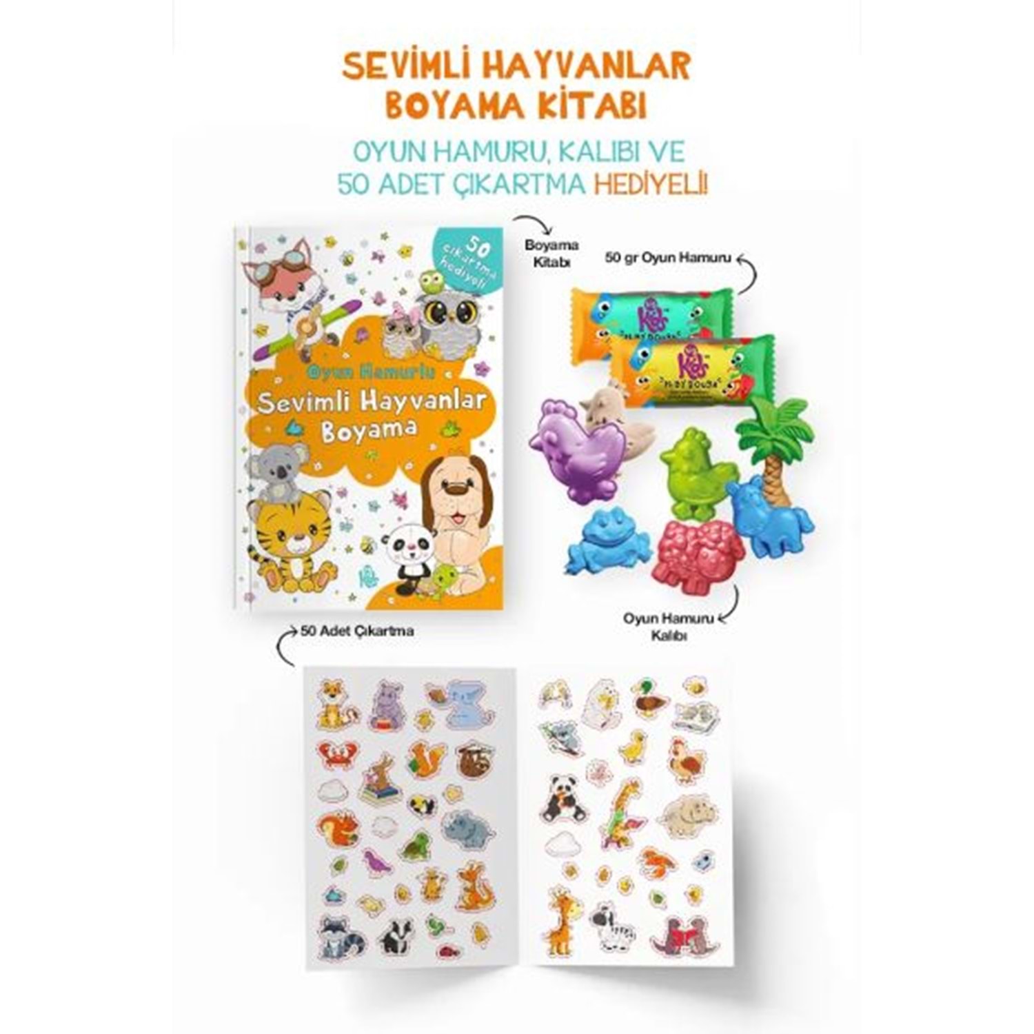 Sevimli Hayvanlar Boyama Kitabı Oyun Hamurlu 3 Yaş